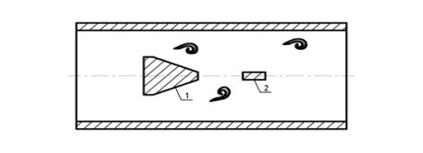 旋渦列在旋渦發(fā)生體下游非對(duì)稱地排列。設(shè)旋渦的發(fā)生頻率為f,被測(cè)介質(zhì)來(lái)流的平均速度為V,